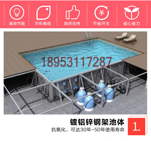 偏关钢结构游泳池可拆装室内恒温游泳馆户外拼装式游泳池